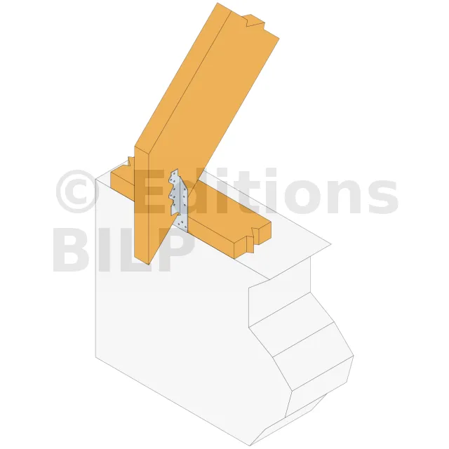 Le pied de chevron PFP permet de raccorder un chevron avec la sablière à un poteau. Il assure ainsi la reprise du soulèvement des fermes situées au droit des pignons.