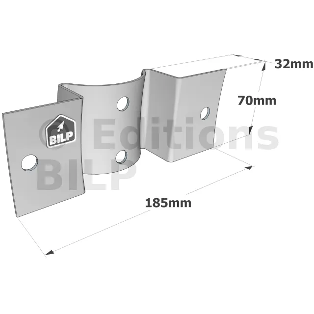 Equerre pour bois ronds - à fixer sur des bois ronds - 185x70x32mm - Réf. RFC80/120_30
