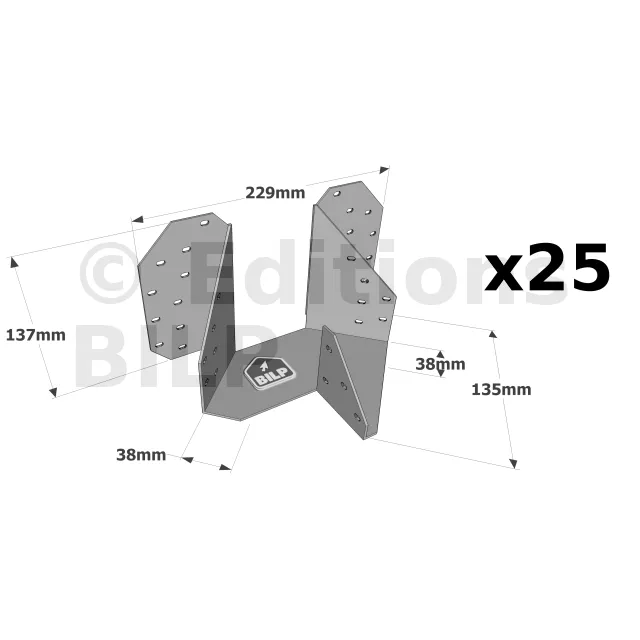 Etrier pour croupe : arêtiers doubles - Réf. THJA26_25