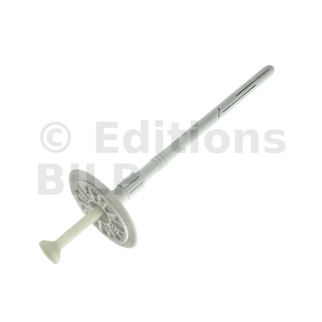 Cheville d’isolation à frapper avec clou en plastique, avec plaque de fixation coulissante