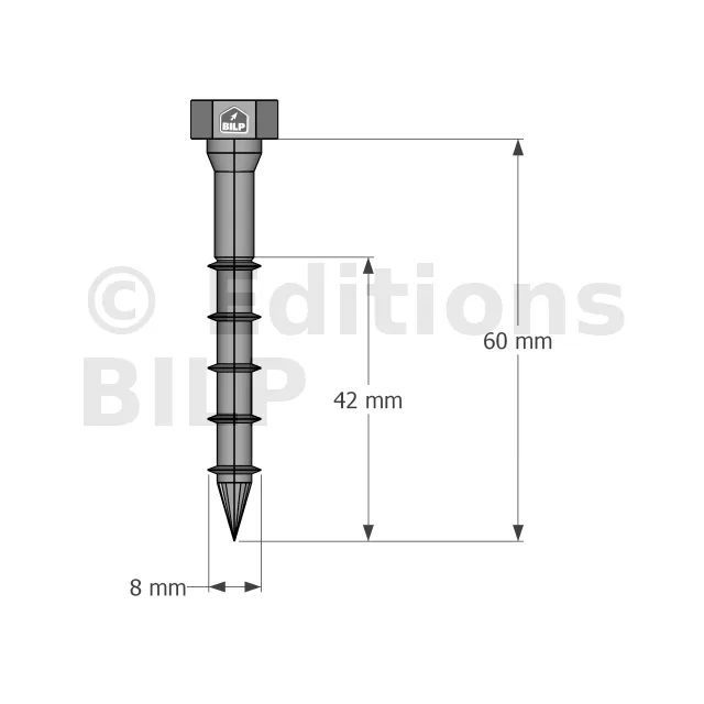 - Marquage de la tête incluant la longueur en mm facilitant le contrôle,
