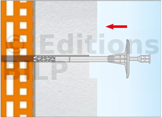 Fixation de l’isolation en polystyrène PSE (polystyrène expansé), PSX (polystyrène extrudé), laine minérale et feutre à lamelles MW.
