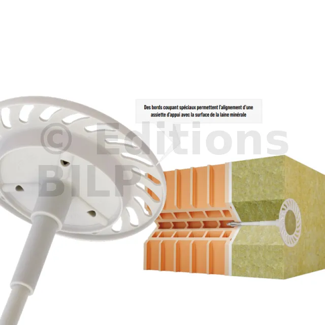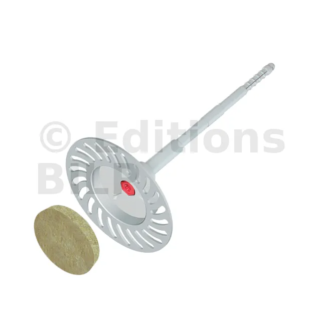 - Disque de laine minérale : Les disques de laine livrés avec les connecteurs permettent d’éviter les ponts thermiques et améliorent l’esthétique de la couche extérieure.
