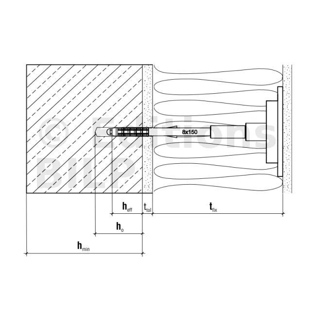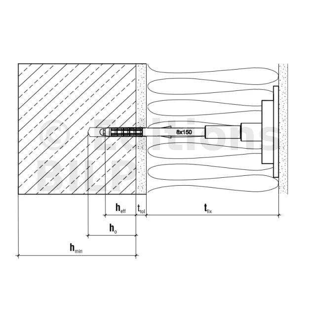 - Profondeur d’ancrage (hef)Substrat cat. A B C D : 35mm