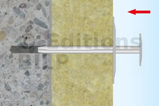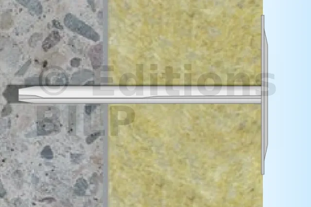 - Rondelle en acier : la surface d’appui sur le matériau isolant est agrandie.