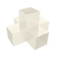 Il permet de raccorder deux poutres 90x90mm perpendiculairement à une autre poutre 90x90mm, le tout étant supporté par un poteau vertical de 90x90mm.