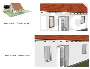 Par exemple, au regard du schéma ci-dessus : une fenêtre PVC a été brisée. Cette fenêtre est introuvable dans le commerce, elle sera donc remplacée par une fenêtre en bois.