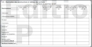 Ce tableau permet de reporter les surfaces de plancher en fonction de leur destination.