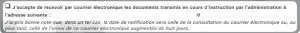 Vous avez la possibilité de recevoir les notifications par voie électronique. Il suffit pour cela d’inscrire une adresse mail dans ce cadre.