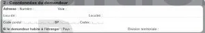 Il est impératif de préciser l’adresse du domicile du demandeur. Cette adresse doit être celle de la personne qui a inscrit son identité dans le cadre précédent.