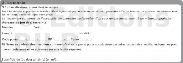 Le terrain doit être localisé au sein de la commune pour que le service en charge de l’examen du dossier de permis de construire puisse se référer aux règles qui lui sont applicables.