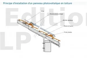 - Par surimposition : la pose s’effectue au-dessus de la toiture au moyen d’éléments de support ;