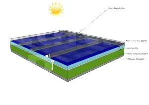 Lorsque les cellules reçoivent un apport lumineux, une couche de jonction assure le transfert d’électrons entre les couches de silicium (couche P et couche N), ce qui engendre un courant électrique continu.