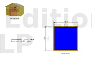 Remarque : de façon très générale, l’emprise au sol devrait correspondre aux « dimensions extérieures » indiquées sur la fiche de vente de l’abri de jardin, sous réserve cependant des modalités exactes d’exécution des travaux et de l’architecture de l’abri.