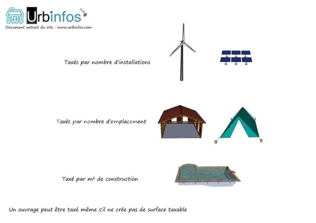 Ainsi, un ouvrage peut parfaitement être taxé sans pour autant générer de la surface taxable. C’est le cas notamment pour :
