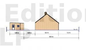 Les eaux pluviales ne doivent pas s’écouler vers le fonds voisin. Par exemple ici, la pente de toiture est orientée vers la parcelle voisine. La gouttière semble d’ailleurs être en surplomb de la parcelle adjacente. La demande d’autorisation de construire risque donc d’être refusée.