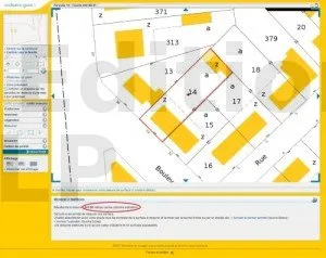 Pour une consultation gratuite, veillez à cliquer sur une parcelle affichée sur fond jaune, et non sur fond bleu (cette dernière option étant réservée à la commande d’un extrait payant).