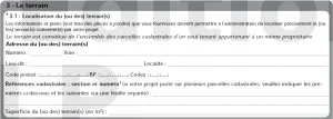 Il est nécessaire de préciser la superficie du terrain dans le formulaire. Cette information est parfois requise par l’administration afin de procéder au calcul des surfaces constructibles.