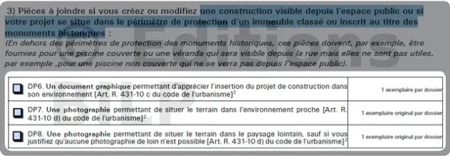 - DP 7 (Déclaration Préalable) ou PC 7 (Permis de Construire) : photographie en environnement proche.