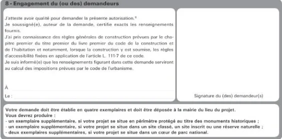 Cet engagement constitue une forme de contrôle « doux » , car exclusivement déclaratif. Cependant, l’engagement du demandeur tel qu’il apparaît au formulaire de permis de construire permet très clairement d’identifier le maître d’ouvrage et de poser les responsabilités de principe.