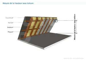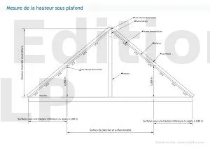 Les surfaces se mesurent depuis la **face interne de la toiture** (isolation comprise). L’épaisseur des matériaux d’isolation n’est pas comptée. La hauteur ne se mesure pas depuis les éléments de charpente (arbalétriers, pannes).