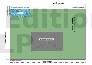 Sous réserve des dispositions du plan local d’urbanisme (PLU) ou du document d’urbanisme en vigueur, des règles générales peuvent imposer, par exemple, une implantation en limite de propriété ou à une distance minimale (souvent 3 mètres) des limites séparatives et des autres constructions. Ces règles d’implantation sont impératives.