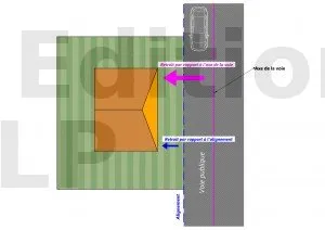 L’implantation par rapport à la voie est définie à l’article 6 du règlement du PLU. Deux principaux cas de figure :