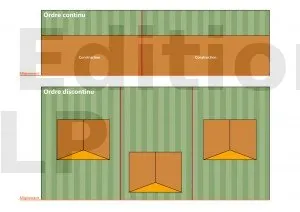 - En ordre discontinu : un recul par rapport à la limite est imposé. Ce recul peut être fixe (ex : 3 mètres) ou variable selon la hauteur de la construction.