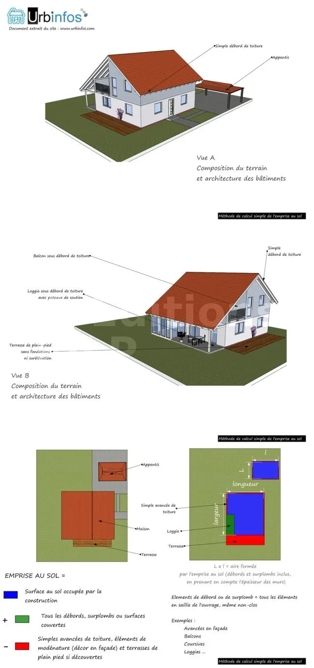 La circulaire du 3 février 2012 détaille la mise en œuvre de la surface de plancher et de l’emprise au sol : circulaire surface de plancher et emprise au sol.