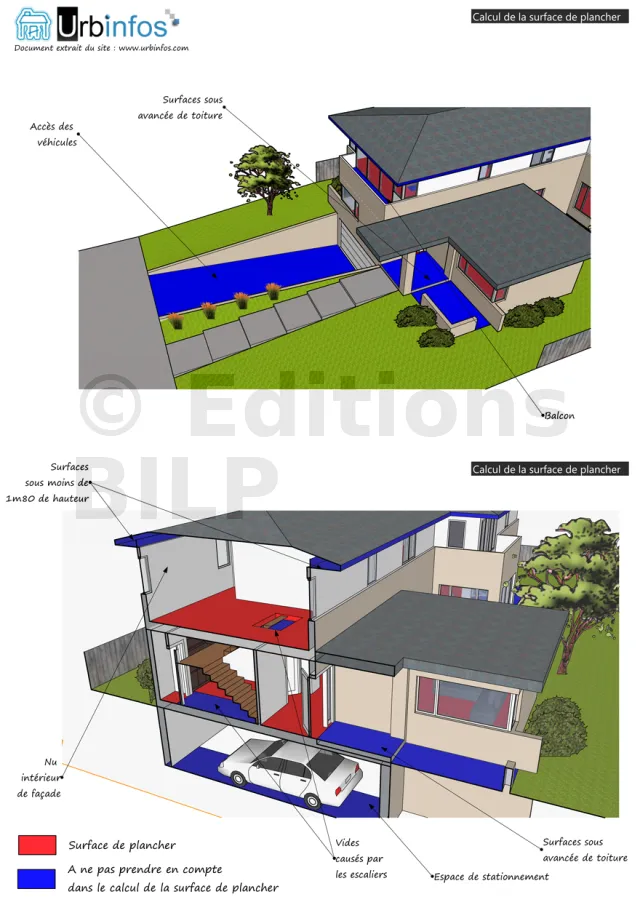 Par exemple, pour un garage souterrain, la descente n’a pas à être intégrée à la surface de plancher.